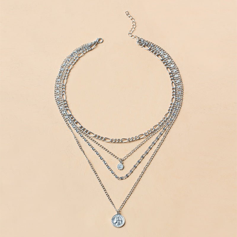Overview: CHUNKY GOLD NECKLACE: The layered coin necklace has a stunning design that looks classic strung along a delicate chain. CHUNKY CHARM NECKLACE FOR WOMEN: The layered coin necklaces are made from materials that ensure the necklaces are durable and will not fade or corrode. MULTILAYER LAYERED GOLD NECKLACE FOR HER: Layered coin necklaces are versatile and can be worn for any occasion, whether it's at the office or at a special event. They are perfect for dressing up a casual outfit or adding a touch of elegance to a formal look. Product Information: Treatment Process: Electroplating Color: gold, silver Applicable population: Female Chain style: water wave chain... Read more