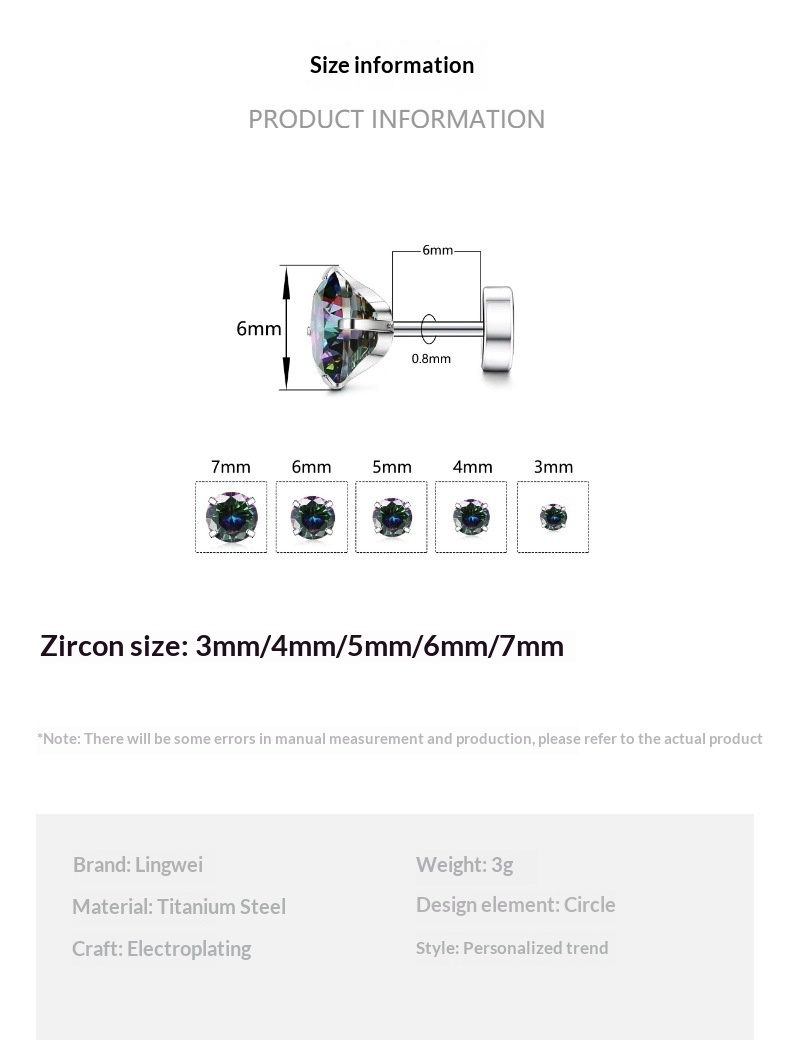 Product information: Processing Technology: Electroplating Colors: Qingqingzijinzi, Color Zirconium, White Zirconium Suitable For: Unisex Material: Stainless Steel Sizes: 3mm, 4mm;... Read more